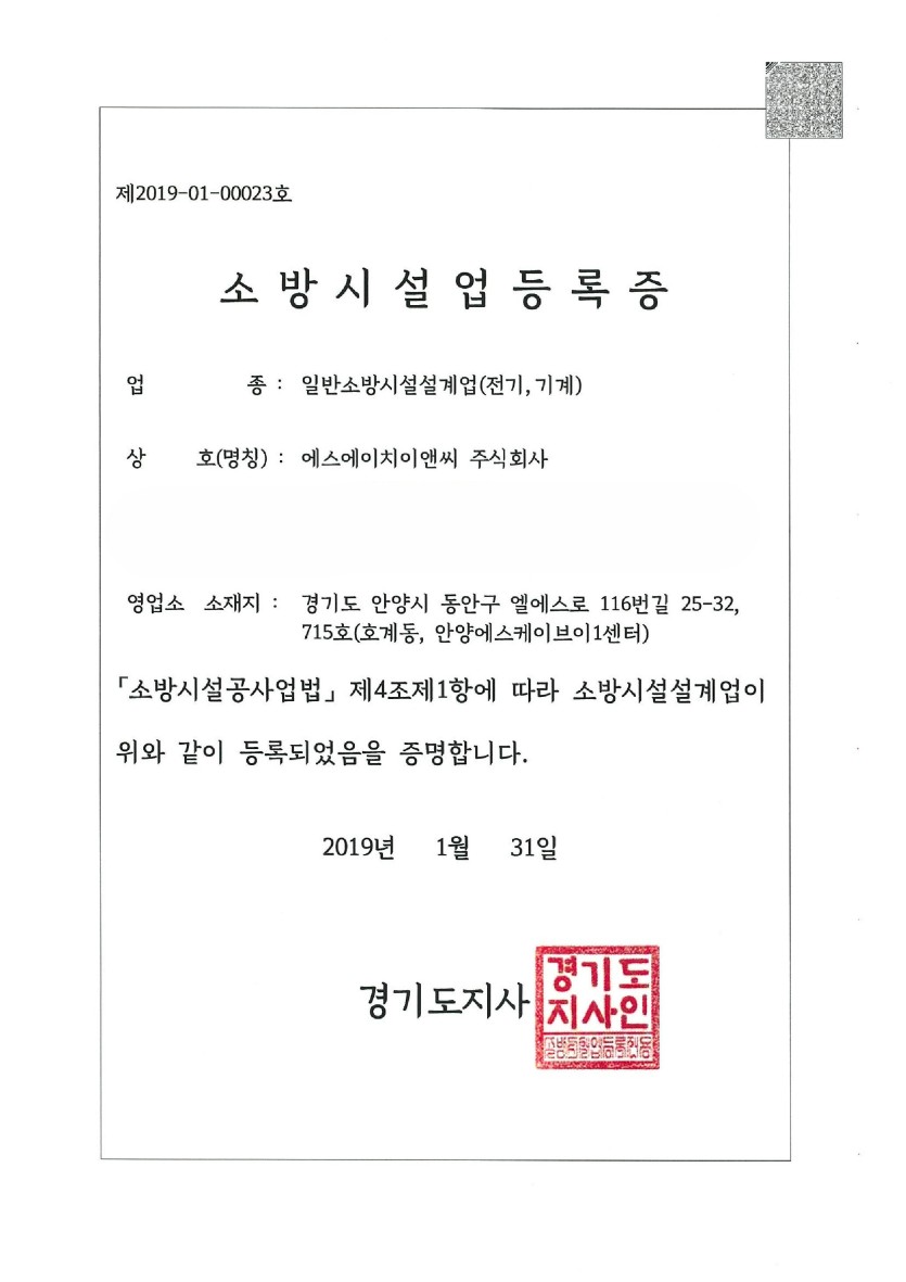 소방시설업등록증(일반소방시설설계업) 페이지 정보 작성자 에스에이치이앤씨 댓글 0건 조회 109회 작성일 24-12-17 15:48 본문 소방시설업등록증(일반소방시설설계업) 목록 글쓰기 이전글 소방시설업등록증(전문소방시설공사업) 다음글 사업자등록증 댓글목록 댓글목록 등록된 댓글이 없습니다. 댓글쓰기 내용 비밀글사용 이름 필수 비밀번호 필수 자동등록방지 숫자음성듣기 새로고침 자동등록방지 숫자를 순서대로 입력하세요.
