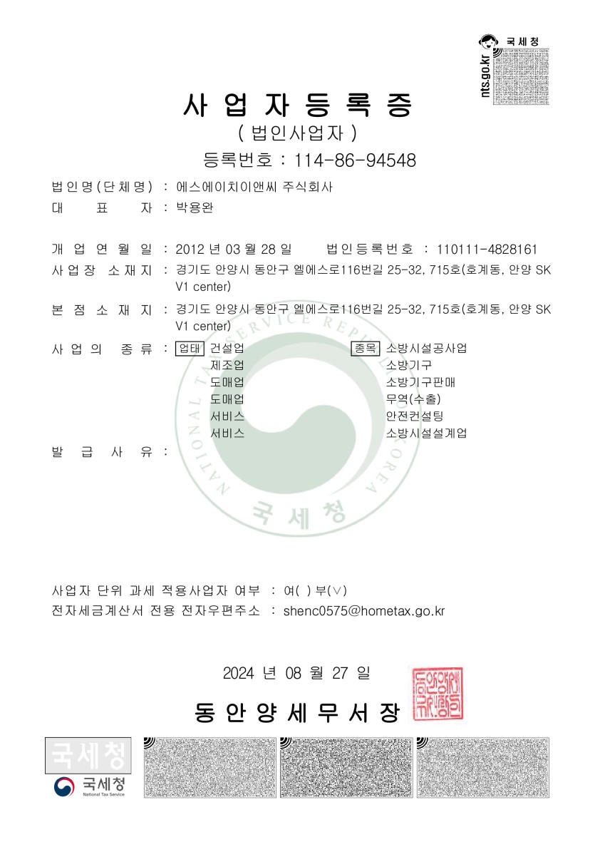 사업자등록증 페이지 정보 작성자 에스에이치이앤씨 댓글 0건 조회 153회 작성일 24-12-17 15:43 본문 사업자등록증 목록 글쓰기 이전글 소방시설업등록증(일반소방시설설계업) 다음글 도어팬테스트 댓글목록 댓글목록 등록된 댓글이 없습니다. 댓글쓰기 내용 비밀글사용 이름 필수 비밀번호 필수 자동등록방지 숫자음성듣기 새로고침 자동등록방지 숫자를 순서대로 입력하세요.